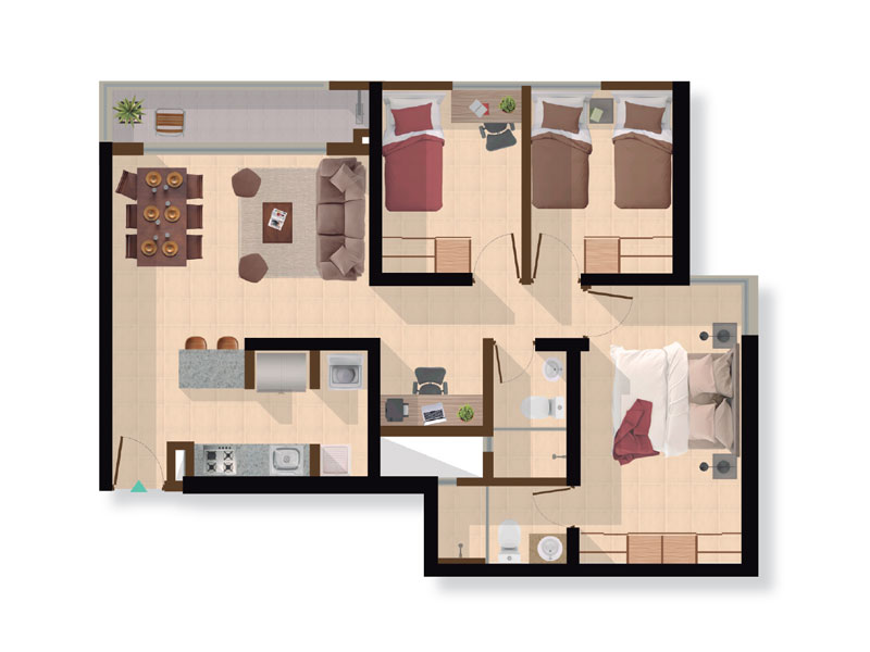 3 Alcobas, sala – comedor, balcón, dos baños y cocina con zona de ropas.